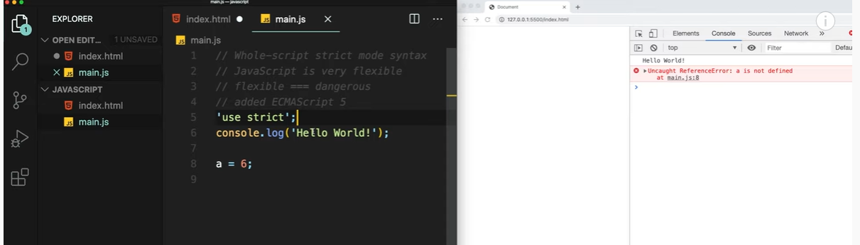 use strict를 선언함으로써 이러한 현상들을 막아줌