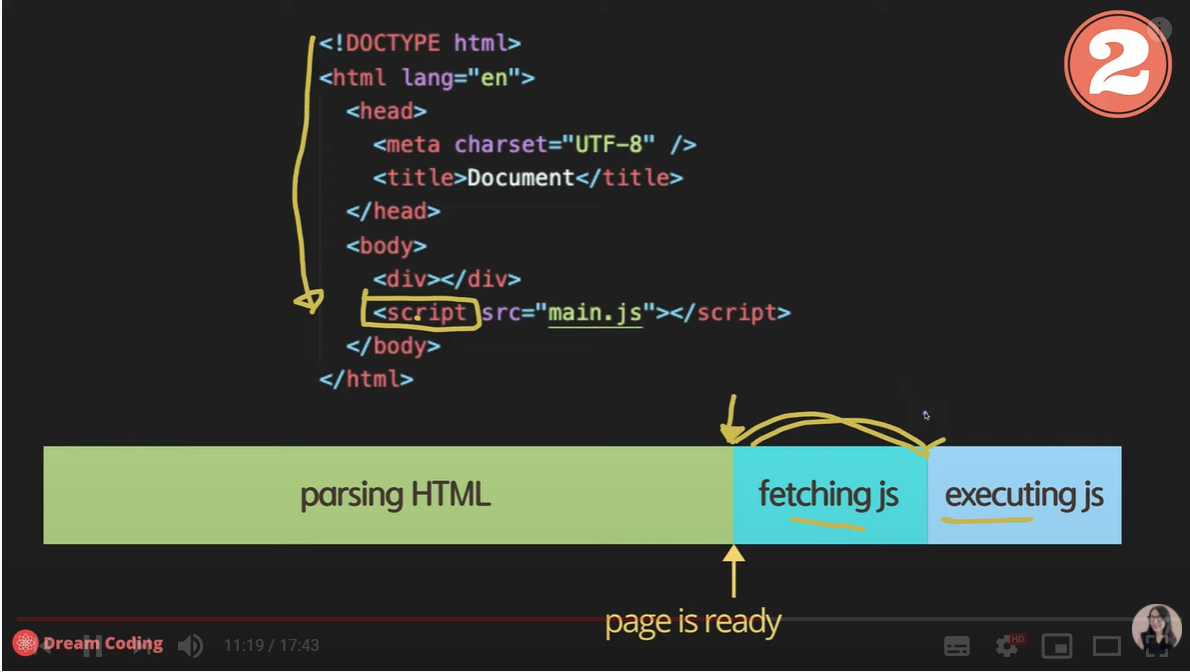 html 문서를 파싱할 때 js를 가져오는 순서를 보면 아래의 그림과 같다.
