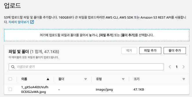 - S3에 업로드 되는 모든 파일에는 객체 URL이 부여되는데 이 URL을 주소창에 호출하면 업로드된 파일이 보입니다.
