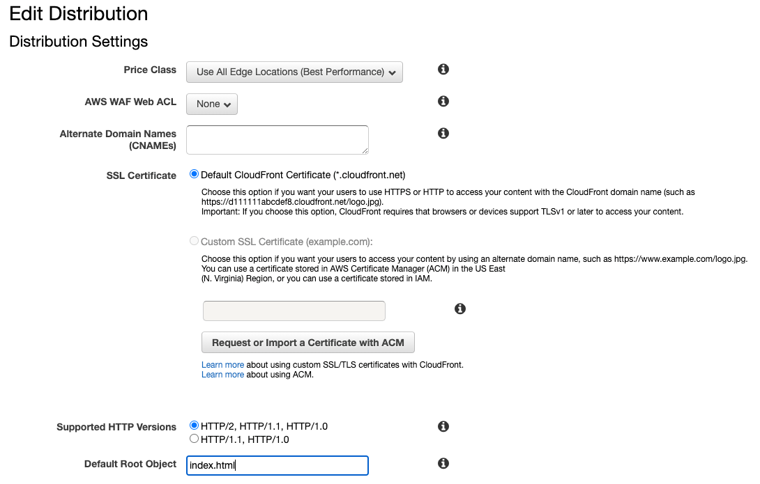 일단은 기본 옵션으로 배포를 생성합니다. (연결한 내 버킷 선택)