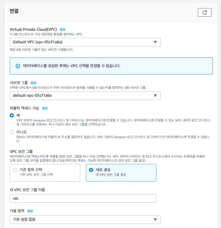 - rds 보안그룹 새로 생성