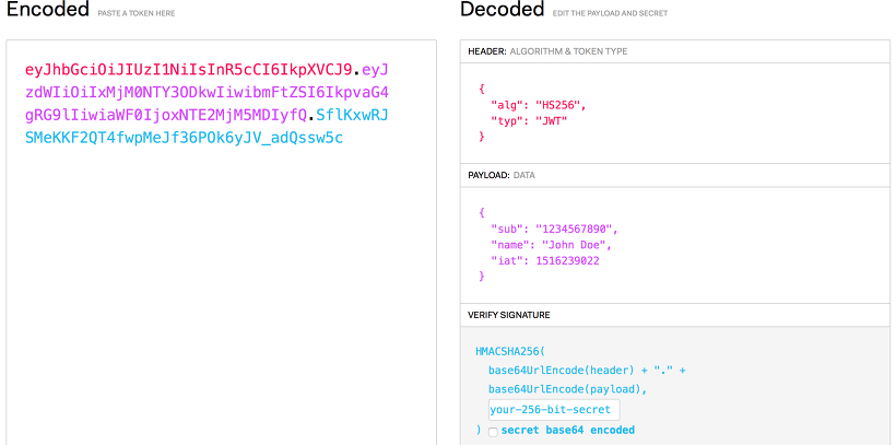 - Verify Signature : Base64 방식으로 인코딩한 Header,payload 그리고 SECRET KEY를 더한 후 서명됩니다.