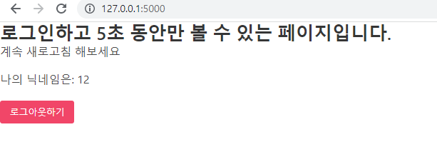 'exp': datetime.datetime.utcnow() + datetime.timedelta(seconds=5) #언제까지 유효한지