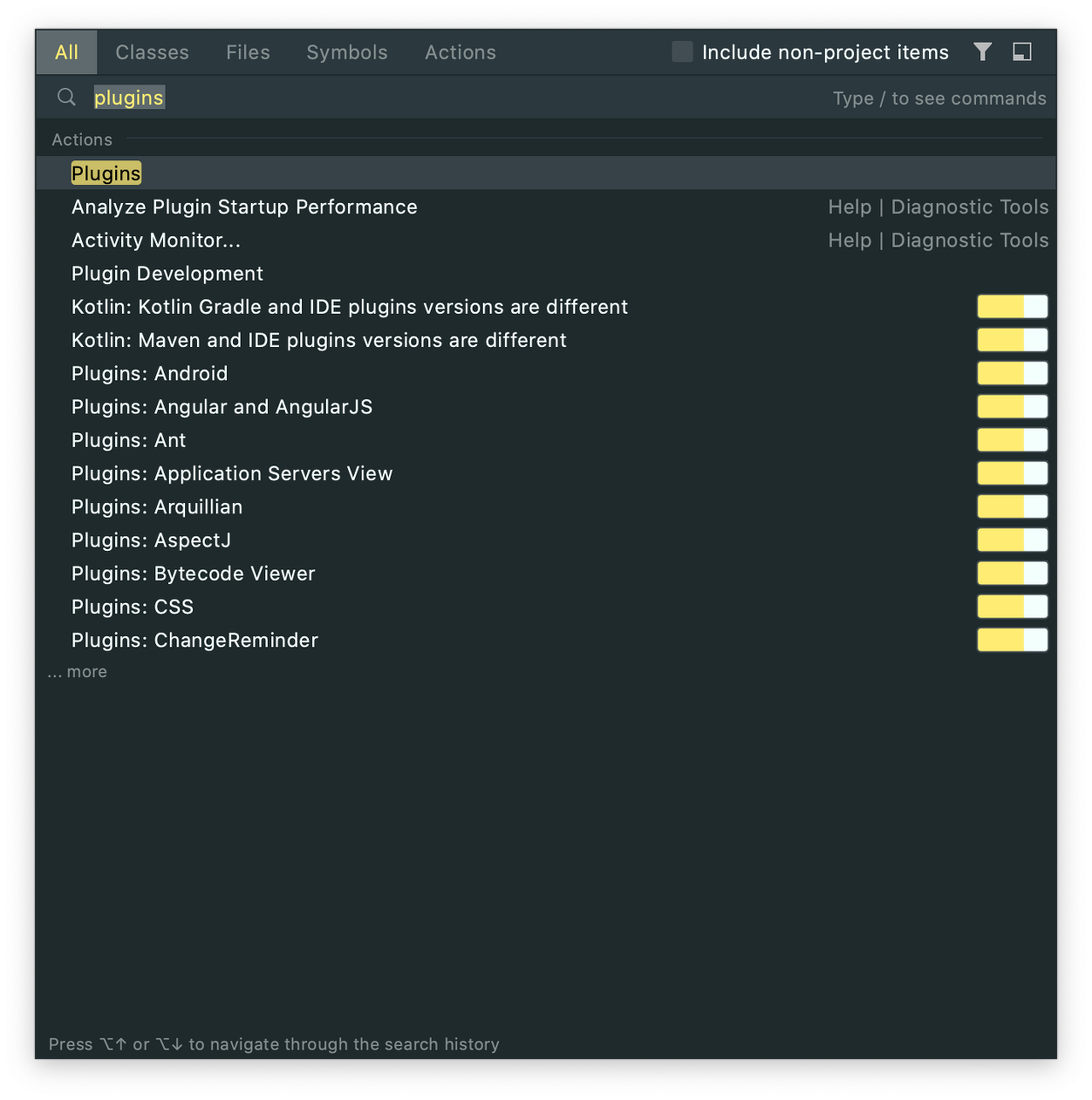 3. Shift 두 번 누르고 plugins 입력 후 엔터