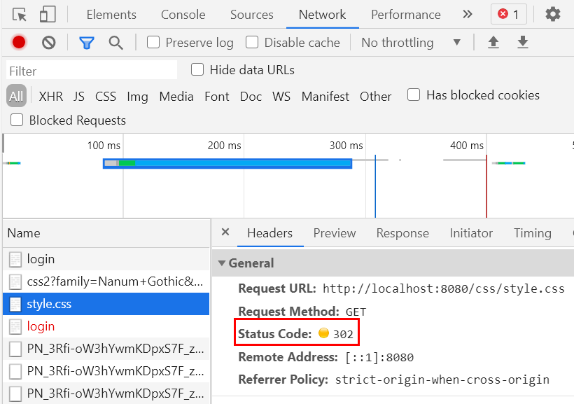 이렇게 실행하면, 스프링 시큐리티에서 CSS, JS가 적용되지 않는다.