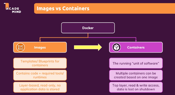 📌 즉, 이미지는 모든 설정 명령과 모든 코드가 포함된 공유 가능한 패키지 이며 컨테이너는 그러한 이미지의 구체적인 실행 인스턴스(어플리케이션) 입니다