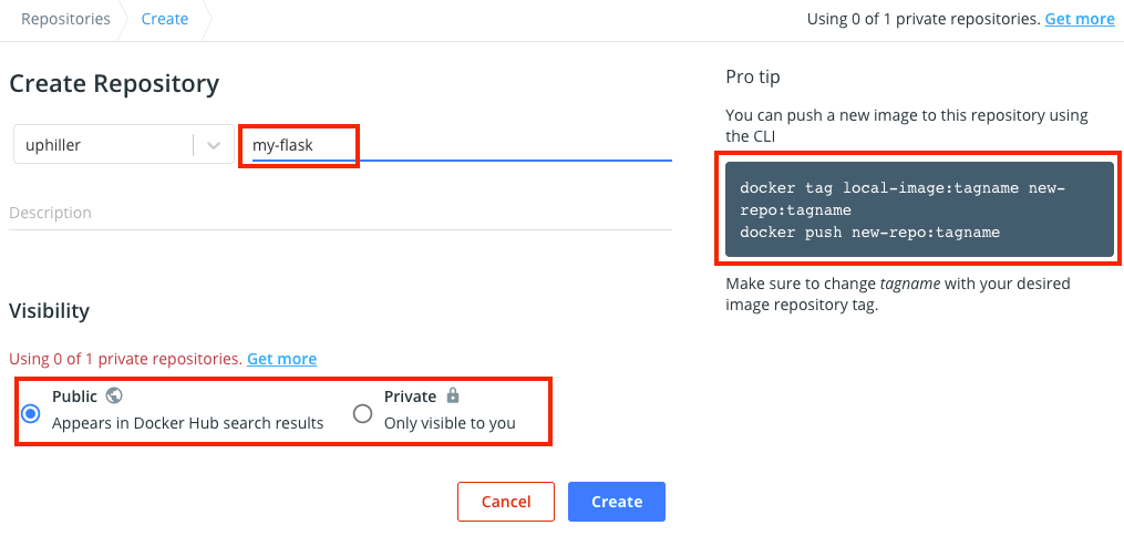 1. 먼저 도커허브에 레포지토리를 만들어 둡니다.(https://hub.docker.com/)