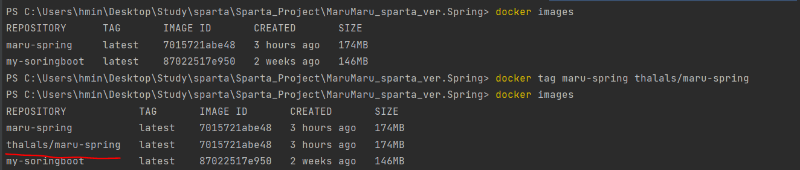 - ec2에서 도커허브에 올라가있는 이미지를 pull 받아서 외부 빌드된 이미지랑 똑같이 사용하면 됩니다.