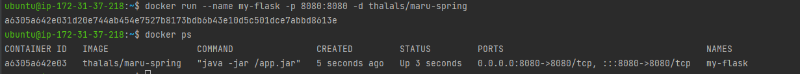 docker run --name {컨테이너 이름} -p 5000:5000 -d {이미지 이름}:{태그}