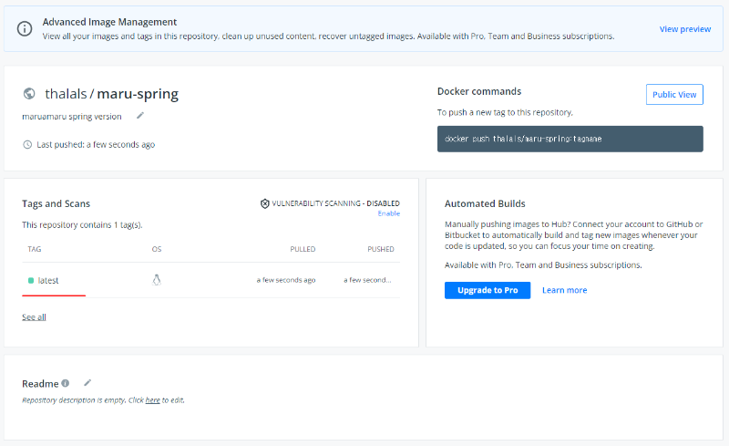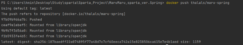 4. 태깅한 이미를 도커허브의 레포지토리에 push해 줍니다.