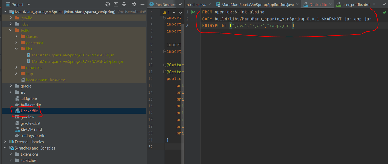 - 확장자 없이 "DockerFile"이란 이름의 파일을 생성하면 도커에서 이미지를 빌드하기위한 기준파일이구나~ 인식하게됩니다.