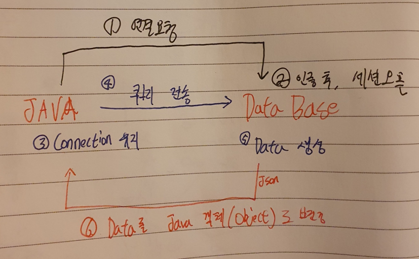 ORM 없이 DataBase의 데이터를 조작하기 위해서는 아래의 일련의 과정을 통해야한다.
