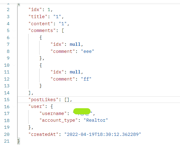 (StackOverflowError) (through reference chain: org.hibernate.collection.internal.PersistentBag[0]->com.sparta.weeklytestspring.domain.PostComment["user"]->com.sparta.weeklytestspring.domain.User["posts"]->org.hibernate.collection.internal.PersistentBag[0]->com.sparta.weeklytestspring.domain.Post["comments"]->org