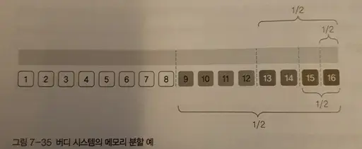 - 프로세스의 크기에 맞게 메모리를 1/2로 자르고 프로세스를 메모리에 배치