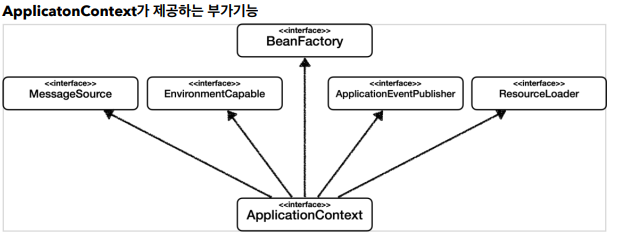 - BeanFactory를 직접 사용할 일은 거의 없다. 부가기능이 포함된 ApplicationContext를 사용한다.