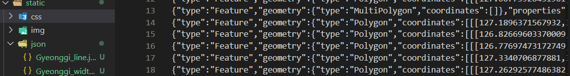 먼저 이용할 json 파일들을 Static 폴더에 저장해 주었습니다.