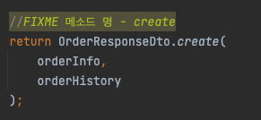 - + 메소드 명은, 그 메소드를 가지는 객체의 기준으로 작성 (ex - Member.createMember() X 👉 Member.create() )
