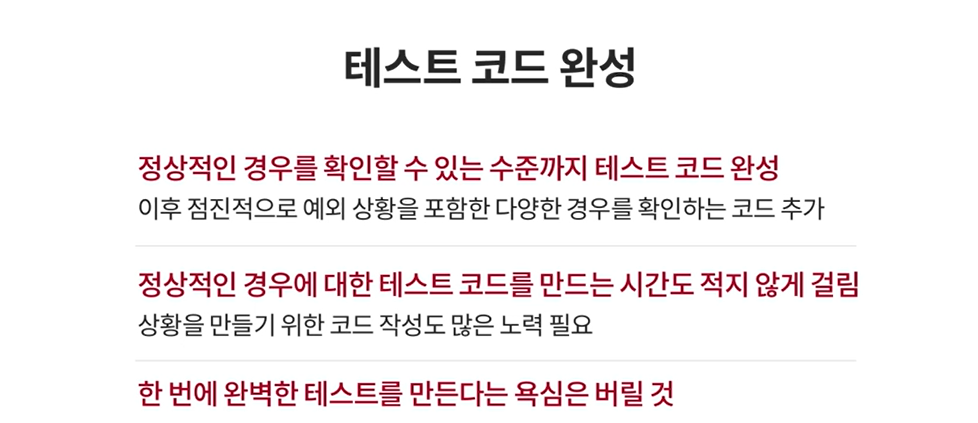 - 정상 작동 테스트 완성 후, 예외 케이스 작성