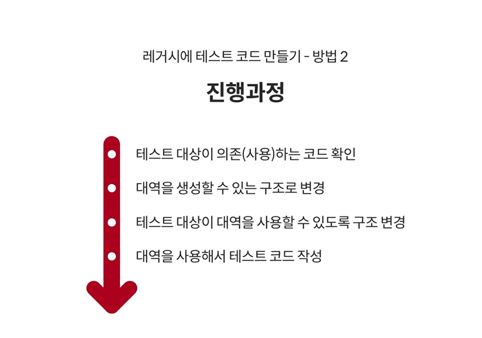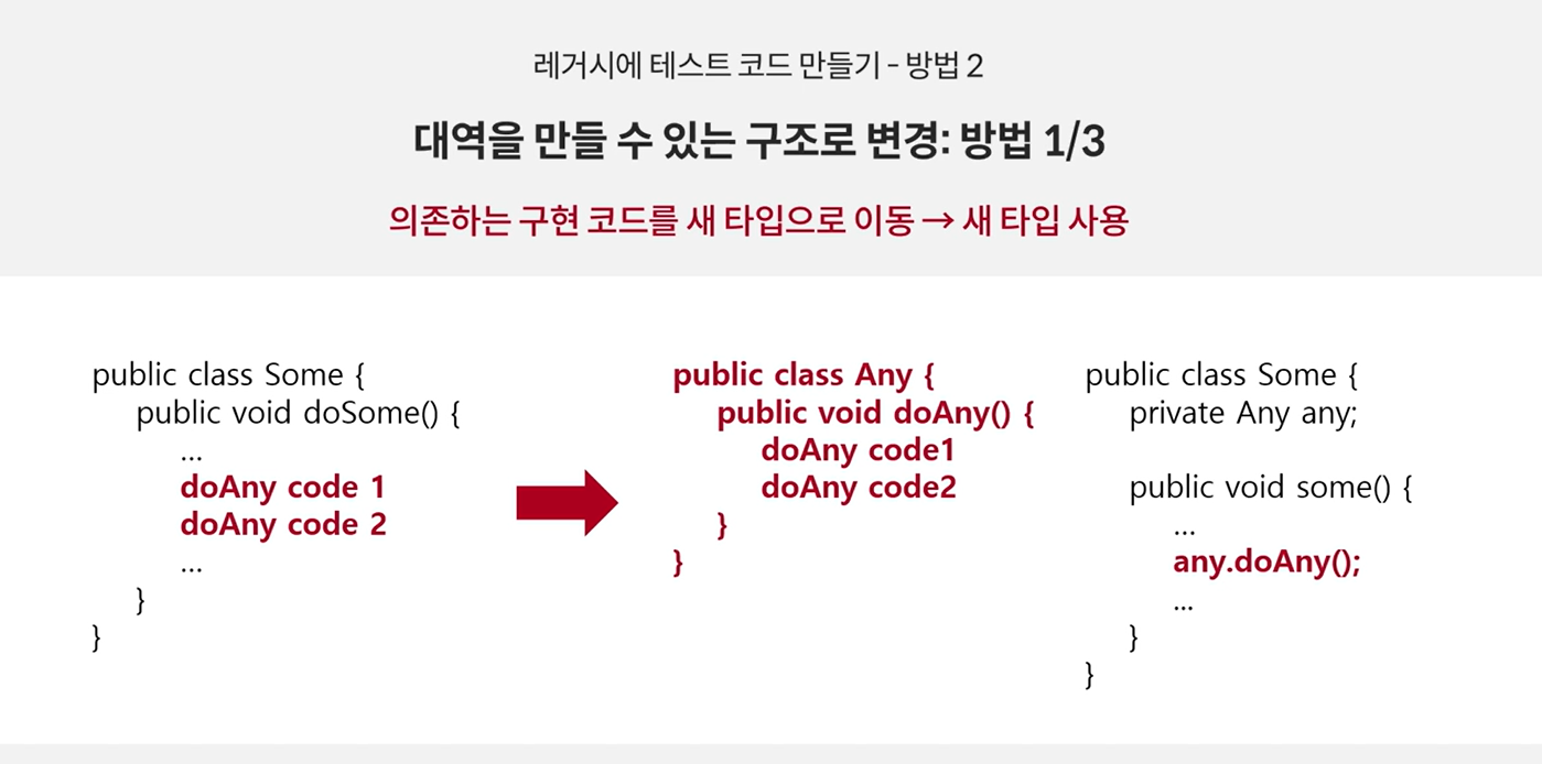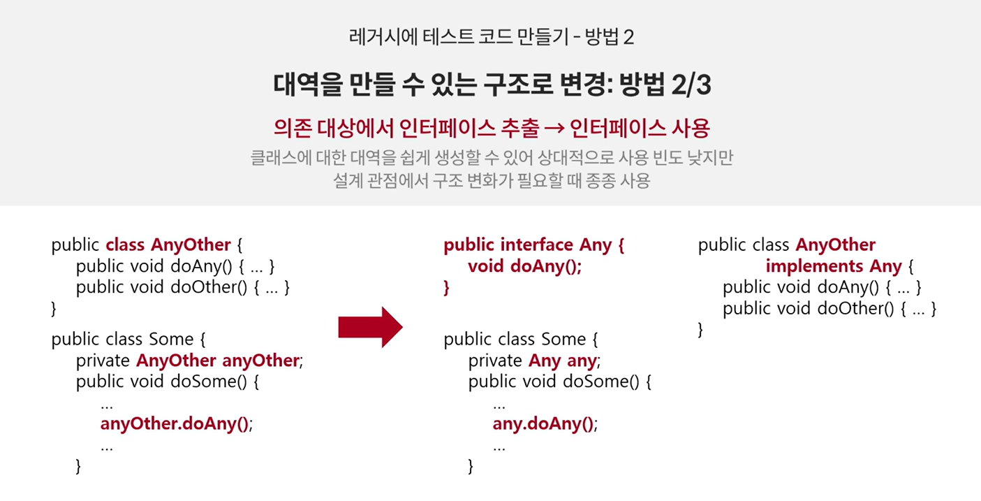 - 의존 대상 : 대역을 만들 수 있는 구조로 변경 필요