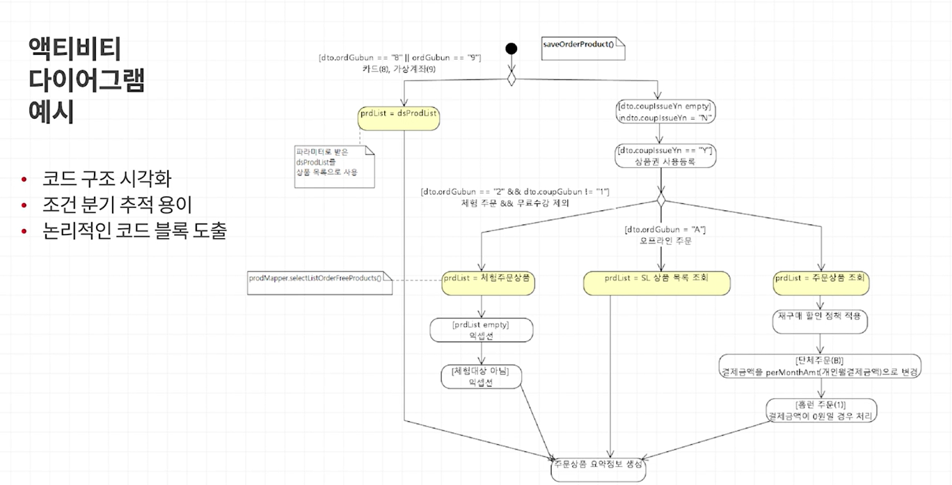 - 액티비티 다이어그램 -:단계적인 코드 실행 흐름