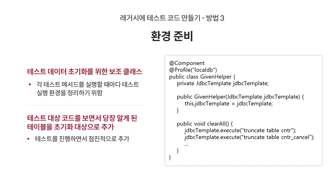 레거시 통합테스트 구현을 위해 필요한 테스트 코드