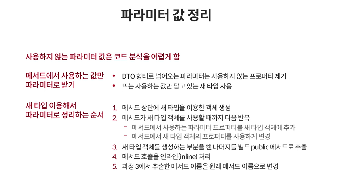 - DTO로 넘어온다면, 사용하지 않는 프로퍼티는 삭제 혹은 새 타입 사용