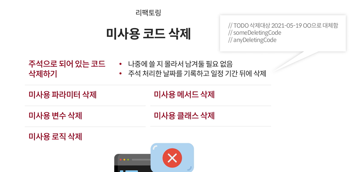 - 리팩토링으로 코드 이해 후, 다시 되돌린 후 리팩토링 한다.