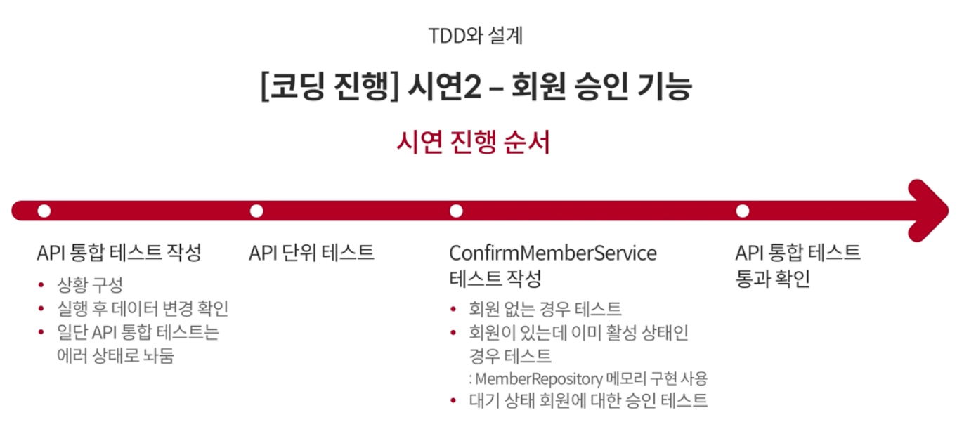- 위의 순서에 맞게 한단계, 한단계 씩 테스트 코드 작성