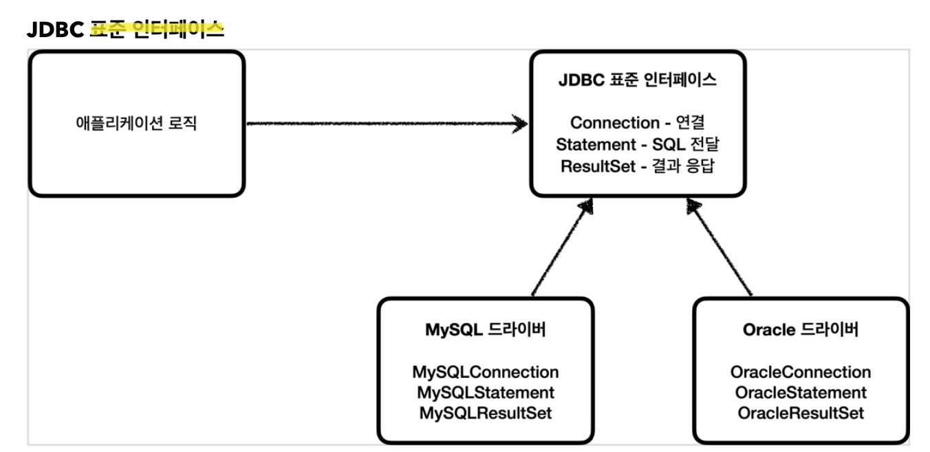 - 예를 들어서 MySQL DB에 접근할 수 있는 것은 MySQL JDBC 드라이버라 하고,