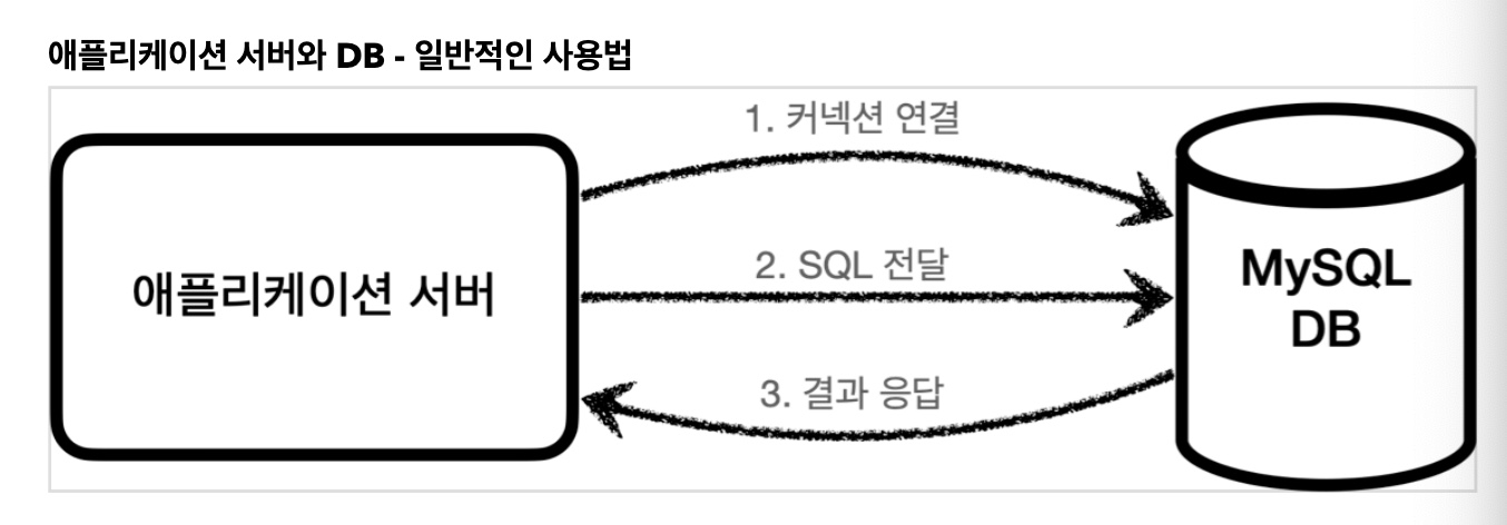 - 결과 응답: DB는 전달된 SQL을 수행하고 그 결과를 응답한다. 애플리케이션 서버는 응답 결과를 활용한다.