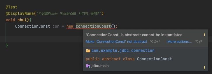 @DisplayName("추상클래스는 인스턴스화 시키지 못해?")
