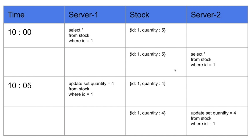 - 🔝 위의 예제 코드는, 흔히 생각되는 단순 재고 감소 로직입니다. 실행 시 아무런 문제가 없지만