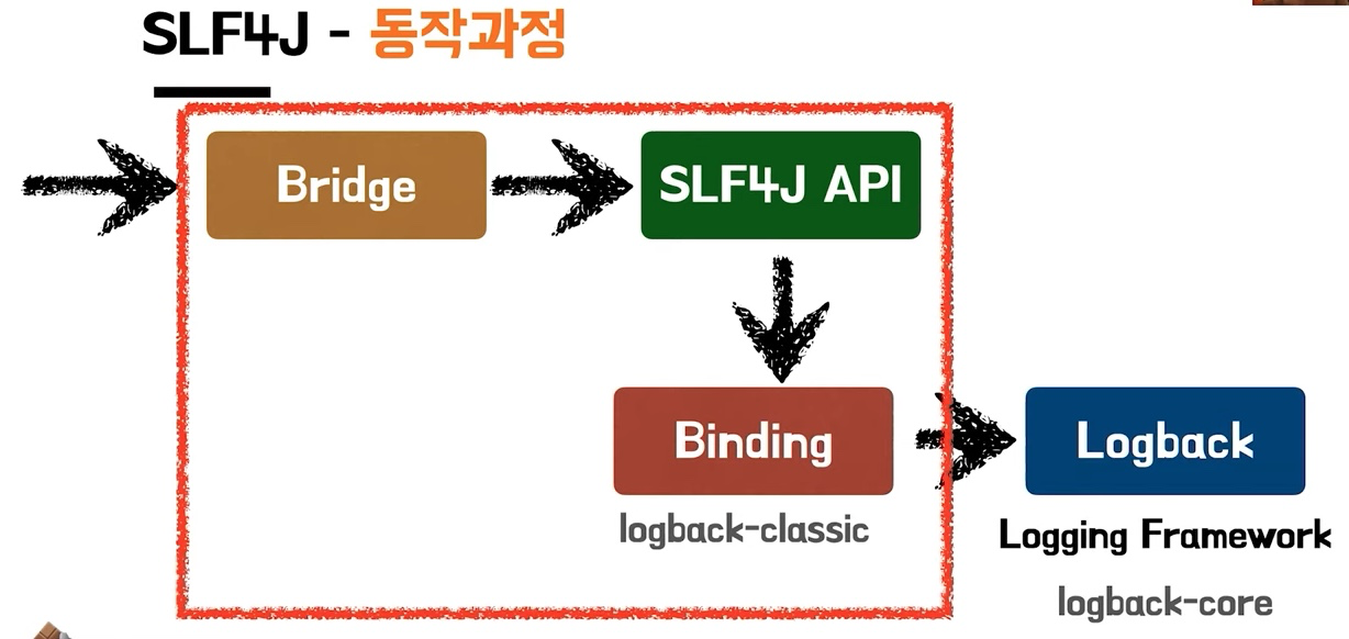 - 의존성을 추가해서 라이브러리를 깔아두면, slf4j 에 맞는 구현체를 찾아서 바인딩합니다.