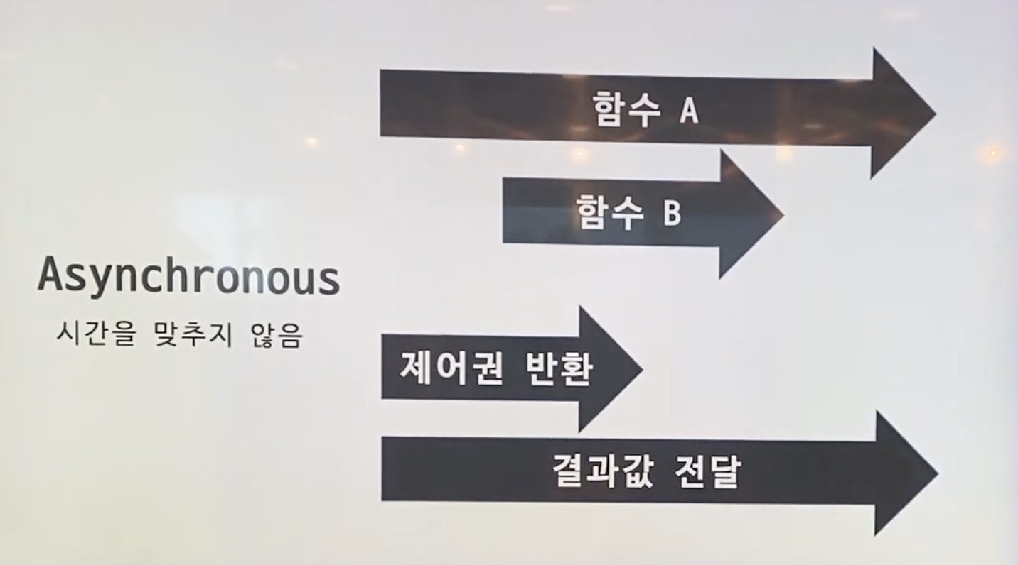 - 호출된 함수의 수행 결과 및 종료를 호출된 함수 혼자 직접 신경 쓰고 처리한다면(as a callback fn.) Asynchronous