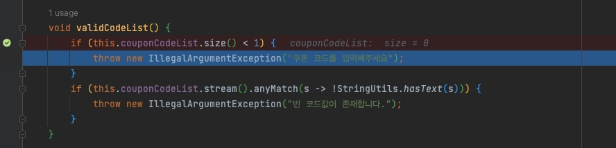 throw new IllegalArgumentException("빈 코드값이 존재합니다.");