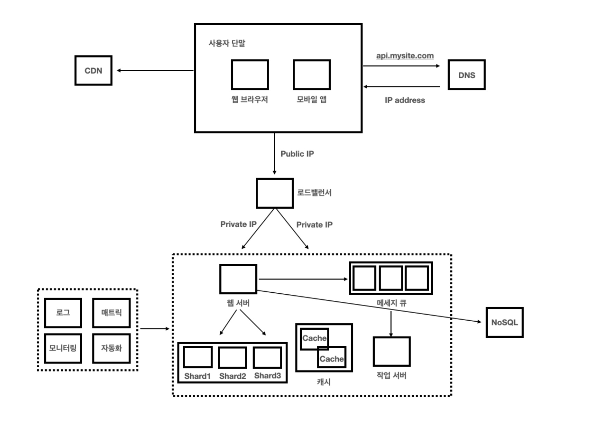 - 복잡한 시스템을 설계하기전에 모든 컴포넌트가 단 한대에서 실행되는 단일서버를 설계해 보자