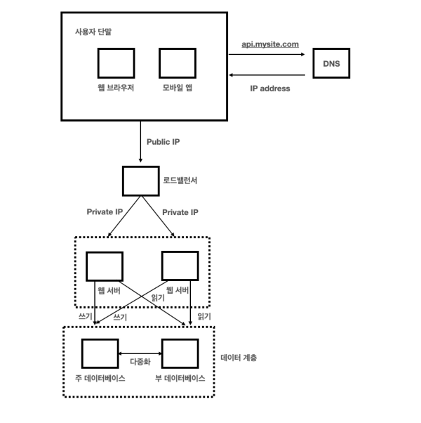 - 웹 서버는 데이터 변경 연산은 주 데이터베이스로 전달한다.