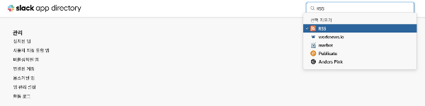 - [Slack] - [관리] - [앱관리] - [rss 검색]