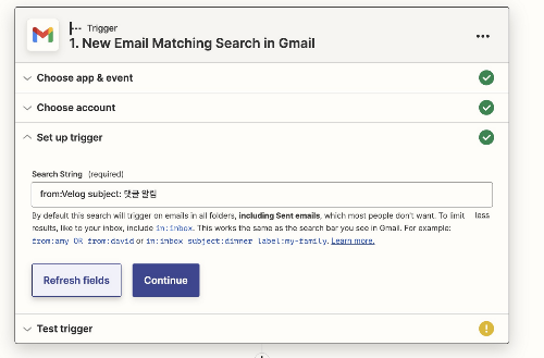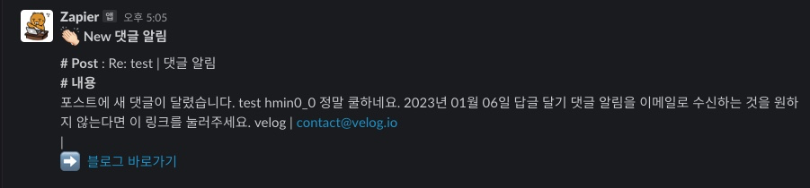 Velog 댓글 작성 시 가입한 이메일로 댓글알림을 설정할 수 있으니 Slack에서 Email 과 연동할 수 있는게 있지않을까?였습니다. - 결과적으로는 Zapier 에서 Webhook을 이용해 무료로! 특정 gmail 내용을 slack 메세지로 보낼 수 있었습니다.