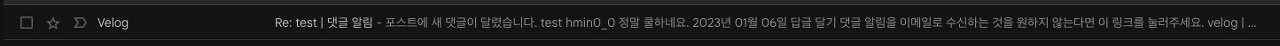 - 항상 테스트가 중요하니, Velog 댓글 알림 기능이 회사 계정 이메일에 잘 오는지와 메일 양식을 확인해보았습니다.