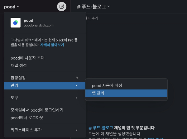 - 먼저 Slack 에서 RSS 구독을 사용할 수 설정해주었습니다.