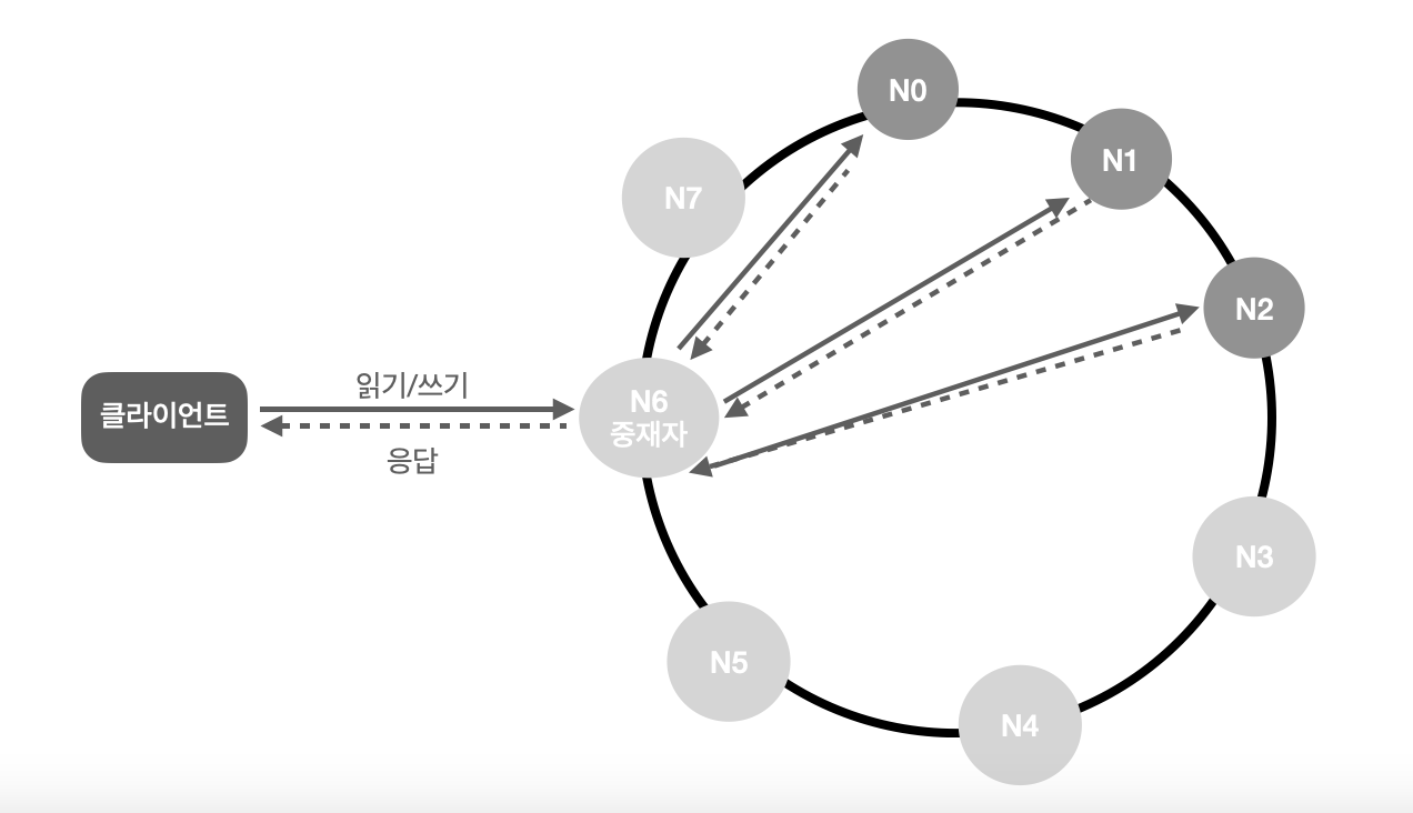 - 노드는 안정해시의 해시 링 위에 분포한다.