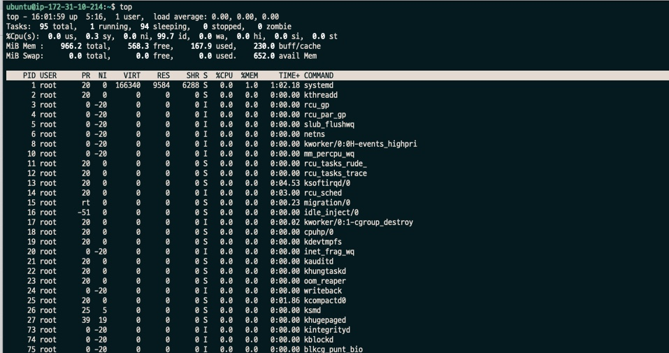 - KiB Mem, Swap : 각 메모리의 사용량