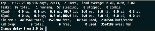 - 옵션 없이 입력하면 interval 간격(기본 3초)으로 화면을 갱신하며 정보를 보여줍니다.