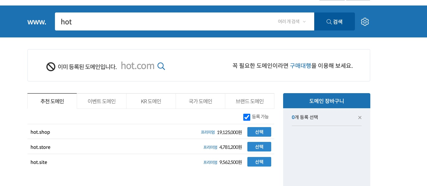 핫한 도메인일수록 금액이 비싸고 생소할수록 저렴한 도메인으로 구매가 가능합니다.