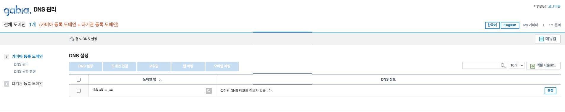 [My가비아] - [DNS 관리툴] 에 구매한 도메인이 보입니다.