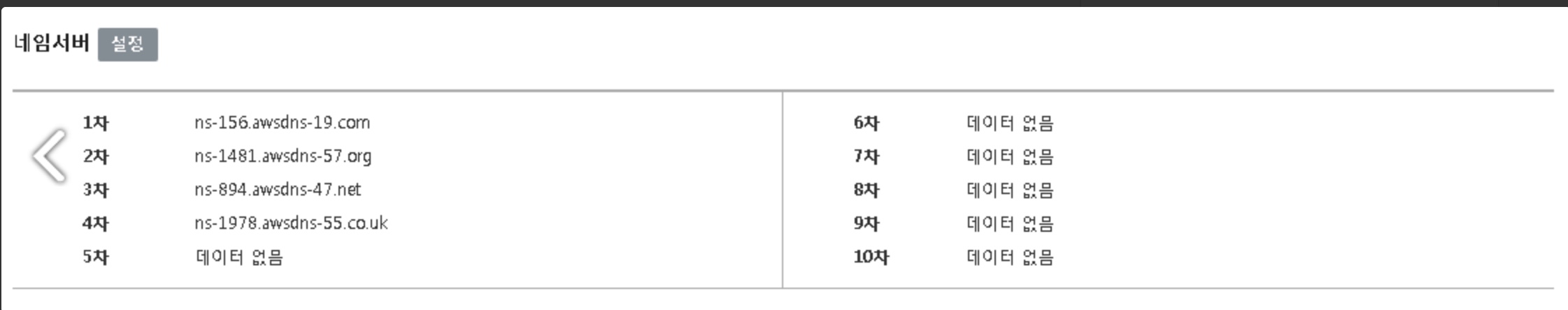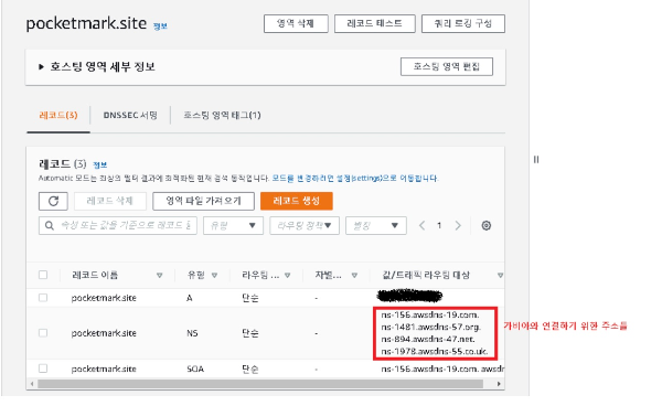 - 설정을 클릭하며 AWS 에서 생성한 레코드의 네임서버를 차례대로 수정해주시면 됩니다.