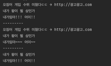 spamFilterClient.writeComment("오징어 게입 수위 미쳤다ㄷㄷ → http://광고광고.com");