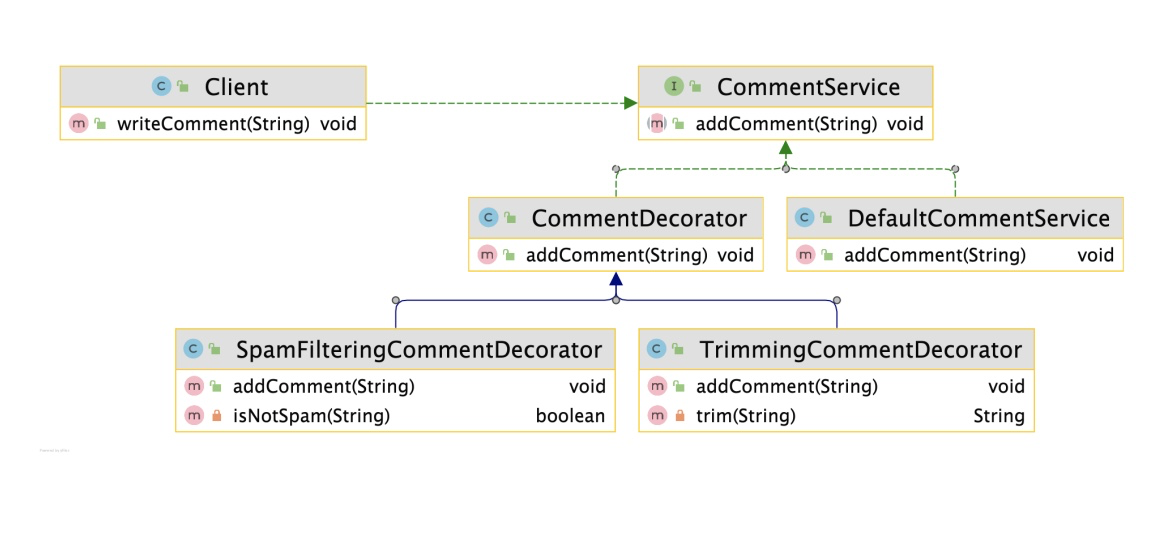commentService = new SpamFilteringCommentDecorator(commentService);