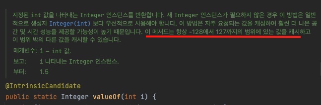 - JAVA Integer 참조 객체에서 valueOf 메소드에서 캐싱을 사용하고 있습니다.